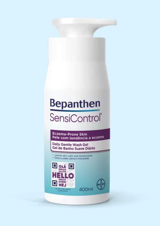Gel de banho de nova geração para a higienização diária da pele sensível e com tendência a eczema, que deixa a pele calma e hidratada.
