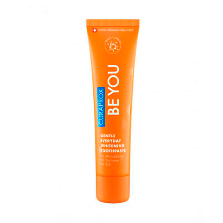 Pêssego + Damasco - Dentífrico com efeito branqueador suave e um sabor e frescura viciantes. A hidroxilapatite e a glucose oxidase, juntamente com os seus ingredientes naturais, asseguram um efeito branqueador enzimático que é suave para os dentes. O xilitol, para além de um sabor doce, fortalece os teus dentes e combate as bactérias.