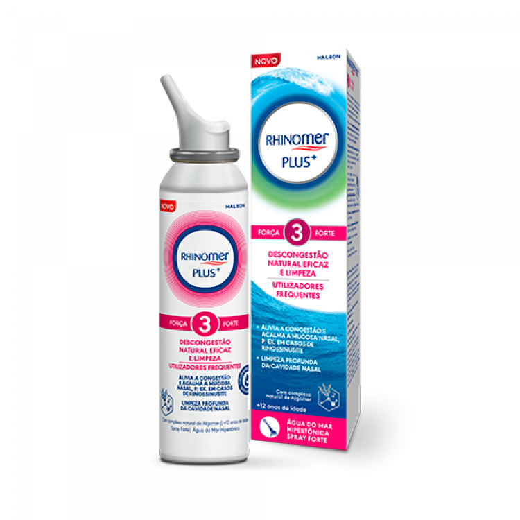 Rhinomer Plus spray nasal força suave 3 é um descongestionante nasal em caso de gripe e constipação indicado a partir dos 12 anos de idade.