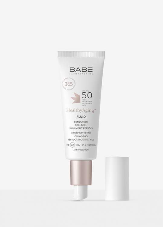 Protetor solar de largo espetro que protege contra UVB + UVA + HEV + IR-A + ANTI-POLUIÇÃO e repara e corrige os sinais de fotoenvelhecimento como manchas, rugas, falta de elasticidade ou tom irregular. A sua fórmula inclui Péptidos Biomiméticos que previnem o envelhecimento cutâneo, ajudam a rejuvenescer a pele, promovem a produção de colagénio e elastina o que contribui para a redução das rugas. Textura fluida, hidratante e não oleosa.