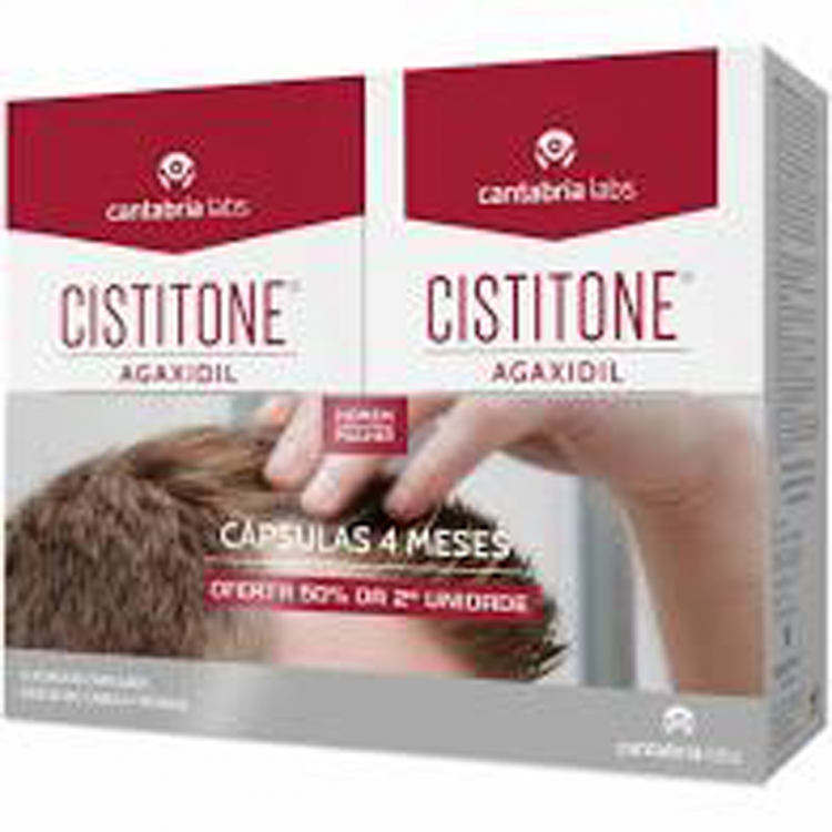 Cistitone Agaxidil Anti-Queda é um suplemento alimentar, que atenua a queda de cabelo crónica. Contribui para a manutenção saudável da fibra capilar. Mantém a pigmentação normal do cabelo. Protege contra as agressões externas diárias. Ideal para o cabelo com tendência a queda crónica (sazonal). Cistitone Agaxidil Anti-Queda é um suplemento alimentar em cápsulas, com uma combinação de extrato de Serenoa repens, óleo de semente cucurbita pepo, L-Cistina, vitaminas (do tipo B, C e E), biotina e selénio, para uma ação anti-queda, antioxidante, protetora e estimulante.
